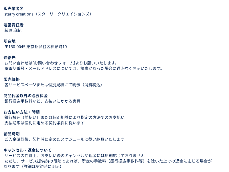特定商取引法に基づく表記